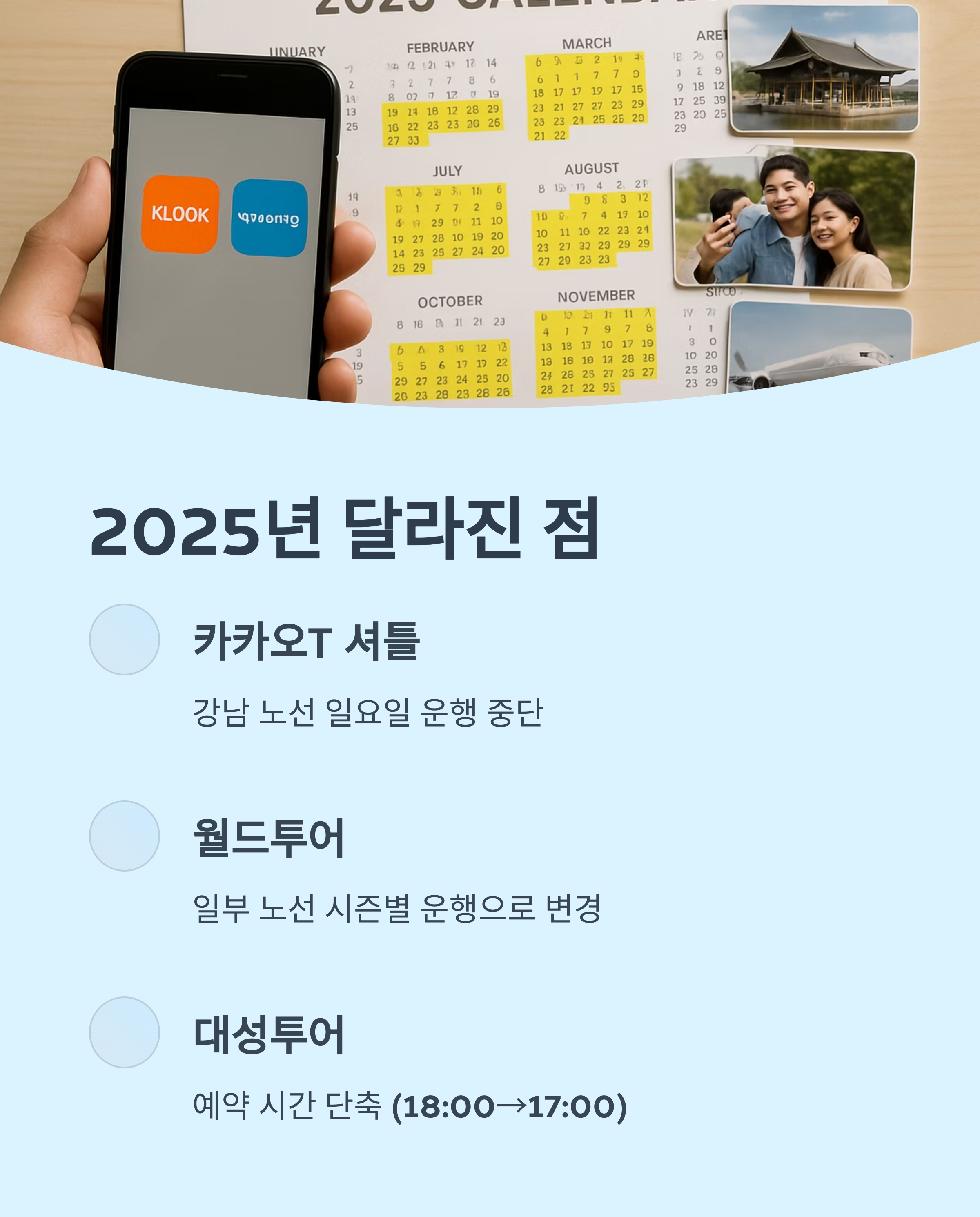 - 대성투어: 예약 시간 단축 (기존 18:00 → 17:00)