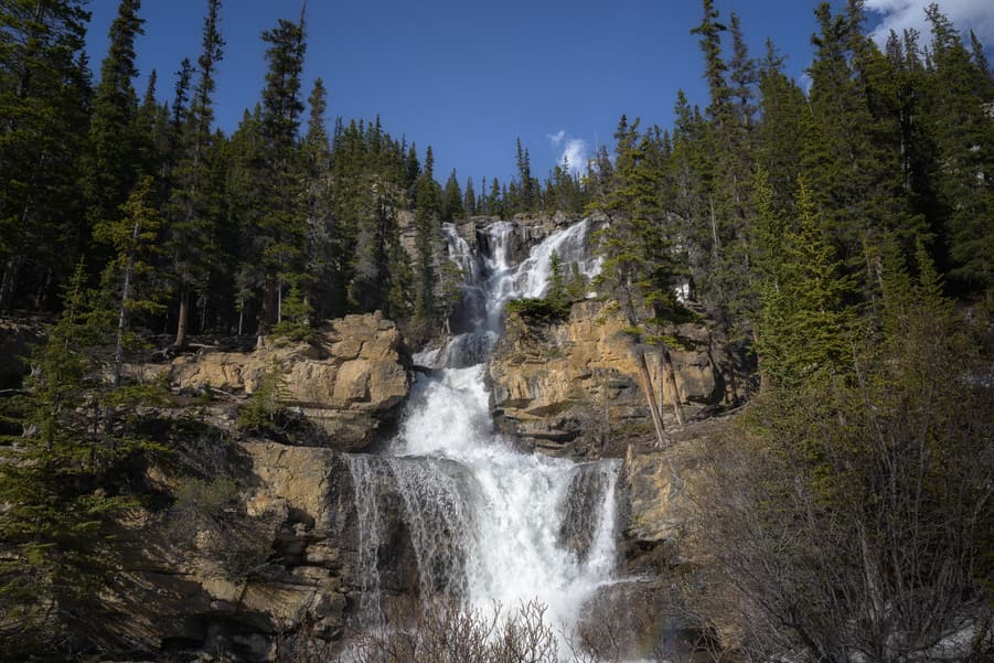 썬왑타 폭포는 아타바스카 빙하에서 흘러나온 물로 형성된 곳으로, 폭포 앞에 위치한 작은 섬의 나무들이 이곳의 독특한 매력을 더합니다. 주차장에서 약 800m 정도를 걸어가면 만날 수 있습니다. 폭포의 물줄기는 힘차게 떨어지며, 그 소리와 함께 자연의 생명력을 느낄 수 있습니다. 폭포 주변에는 잘 정비된 산책로가 있어 가족 단위의 여행객들도 쉽게 둘러볼 수 있습니다. 🌲💧