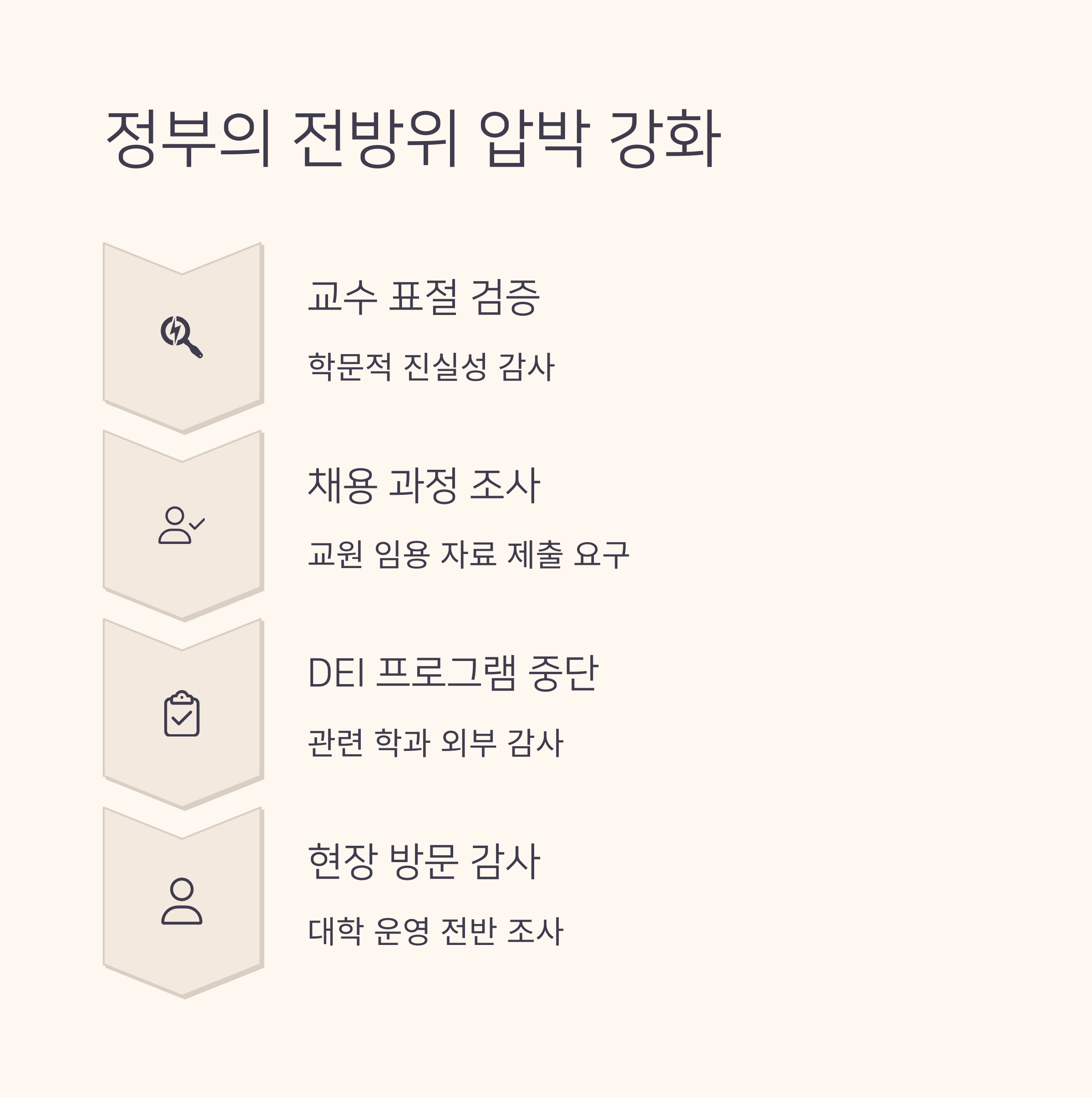 트럼프 행정부는 캠퍼스 내 반유대주의 표현을 엄격히 제한하고, 특정 학생 단체의 활동을 제한하며, 중동 관련 학술 프로그램에 대한 감독을 강화하는 등의 정책 변경을 요구했습니다. 또한 교수 채용과 학생 입학 과정에서 정치적 성향을 고려하지 않도록 하는 가이드라인 도입도 요구했습니다.