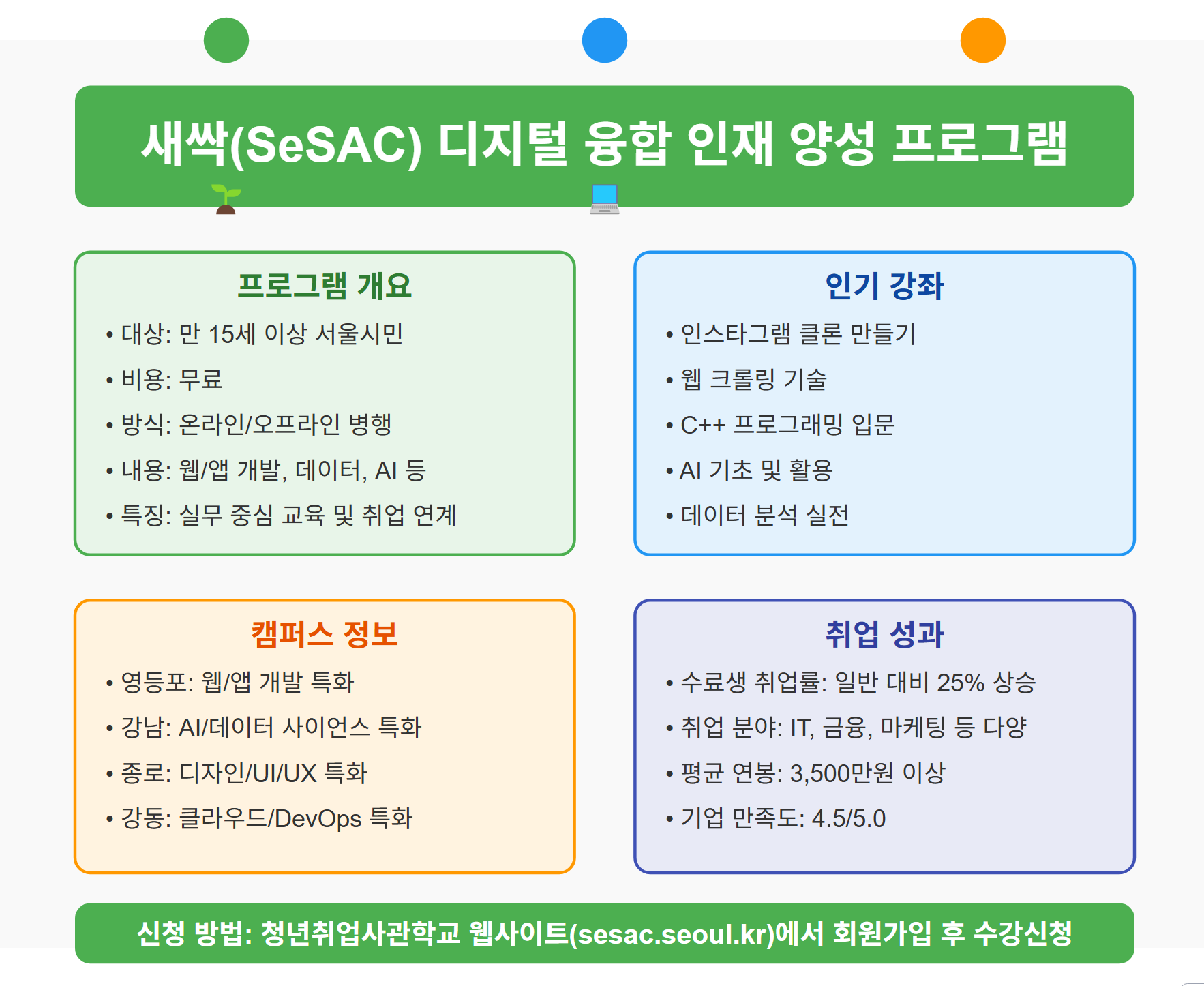 안녕하세요, 여러분! 오늘은 서울시에서 제공하는 놀라운 교육 기회, 청년취업사관학교와 그 교육 브랜드 새싹(SeSAC)에 대해 상세히 알아보려고 합니다. 디지털 시대에 필수적인 SW 역량을 무료로 배울 수 있는 이 프로그램, 여러분의 커리어에 새로운 전환점이 될 수 있을 거예요! 😊