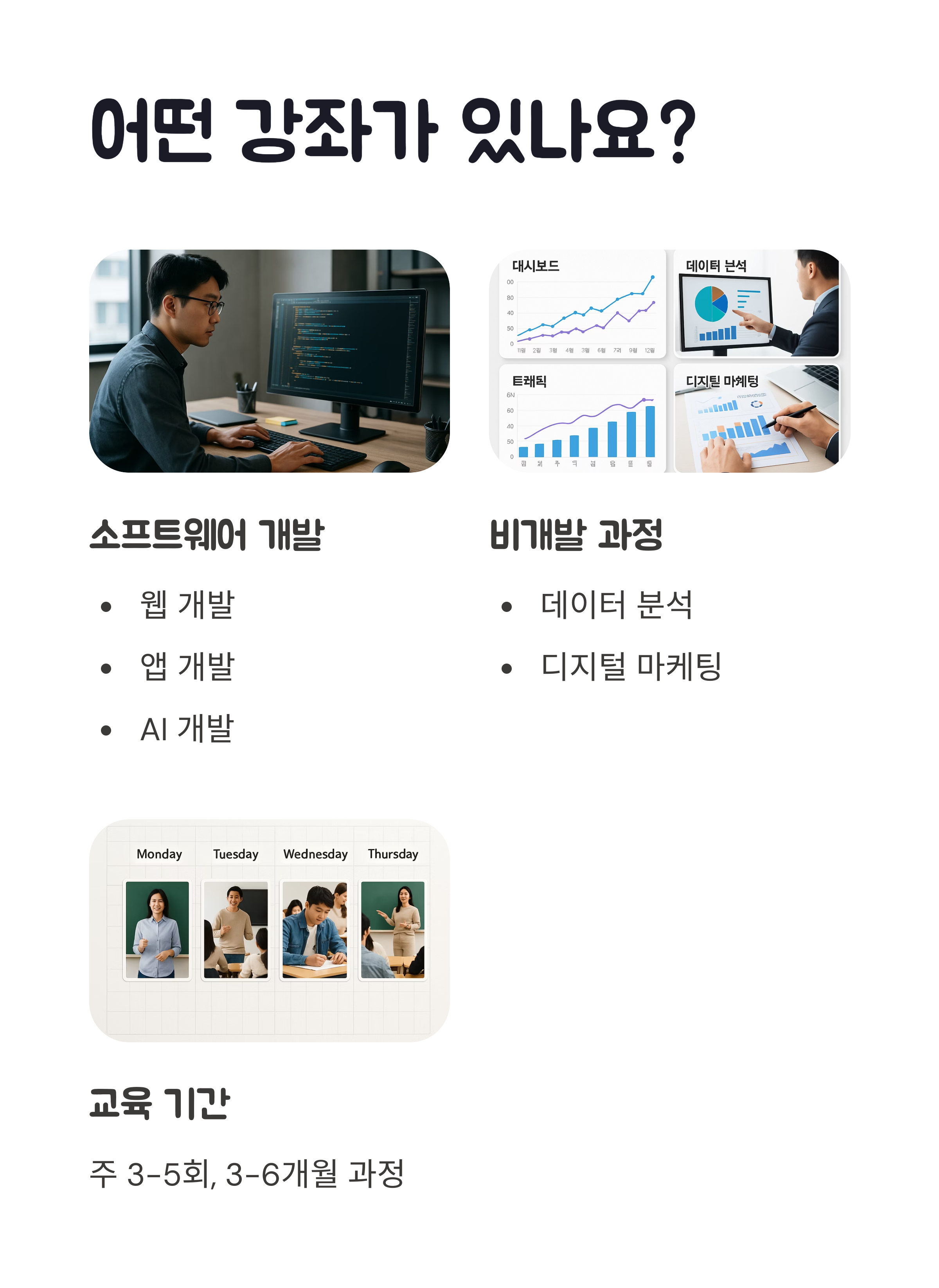 | 교육 내용 | 웹/앱 개발, 데이터 분석, AI, 클라우드 등 |