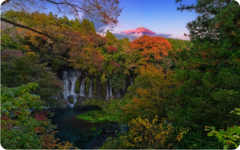 Q: 폭포 외에 일본의 자연 경관을 즐길 수 있는 방법이 있나요?