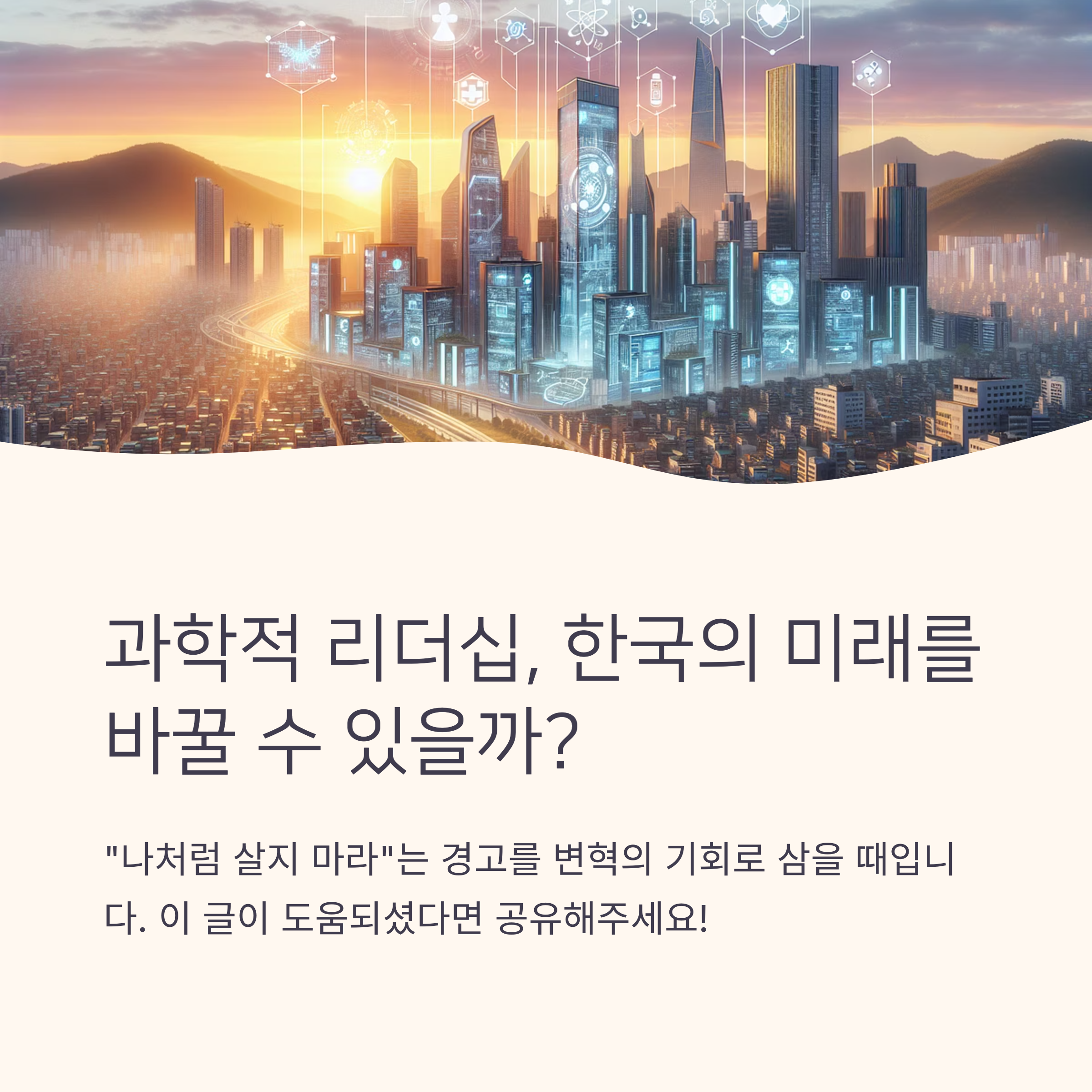 "이과생 리더십"의 중요성은 단순히 이과 출신이어야 한다는 의미가 아니라, 과학적 사고방식과 현장 경험을 바탕으로 실질적인 문제 해결에 집중하는 리더십의 필요성을 의미합니다. 이러한 리더십이 뒷받침될 때, 이국종 병원장과 같은 현장 전문가들의 좌절도 끝나고, 의료계와 과학기술계의 위기도 극복할 수 있을 것입니다.