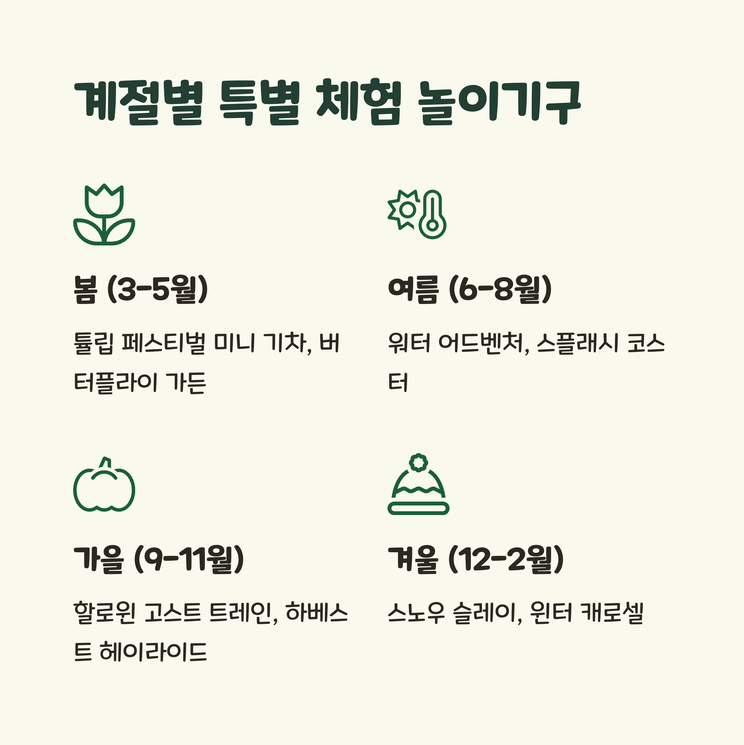 🌈 계절별 특별 체험 놀이기구 안내