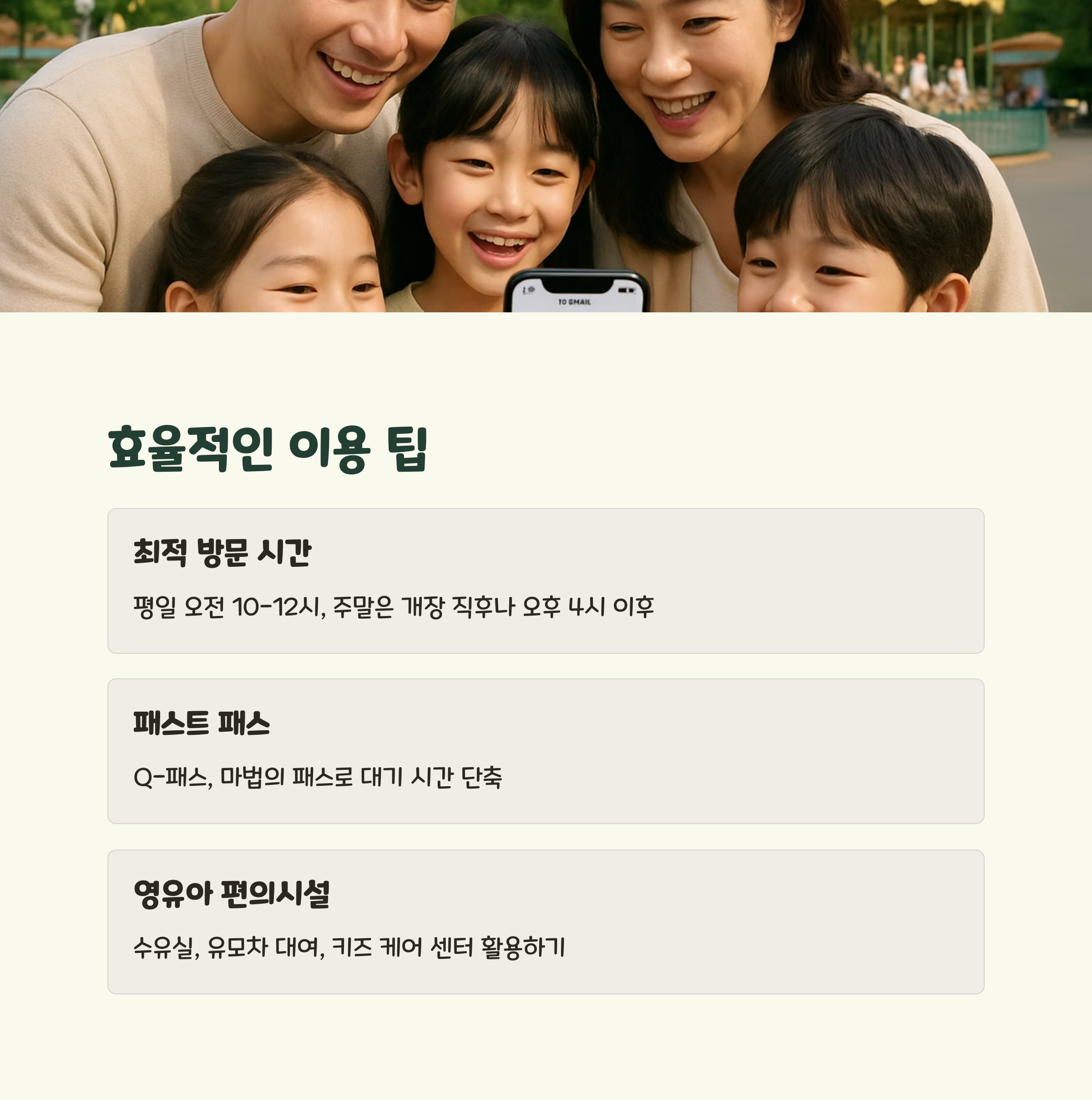 | 👶 아이와 함께하는 에버랜드 완벽 가이드: 키즈존 및 유아동반 꿀팁 총정리 2025 (0) | 2025.05.06 |